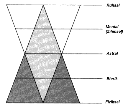 Bu sürekliliğin en önemli modeli bu sürekliliği on temel varoluş düzeyi veya aşama olarak resmeden Hayat Ağacı şeklidir. Bununla birlikte şu andaki amaçlarımız açısından farklı bir model daha yararlı olabilir. Bu model, yukarıda incelediğimiz tecrübenin beşli sınıflandırmasına dayanır. Bu model biri maddeyi, öteki ruhu temsil eden birbirini kesen iki üçgenle resmedilir (Bak. Şekil 1).